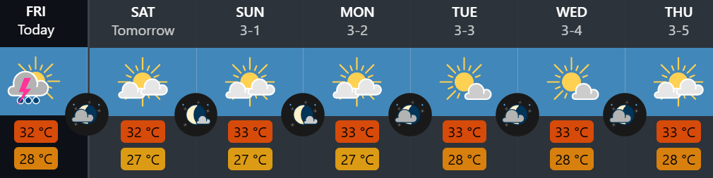 - Weather: Locked into peak high-season mode. Blue skies, 31-33°C, dry as parchment. The kind of weather that makes you forget rain exists. 🌞